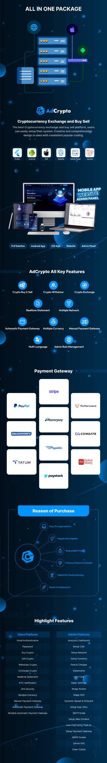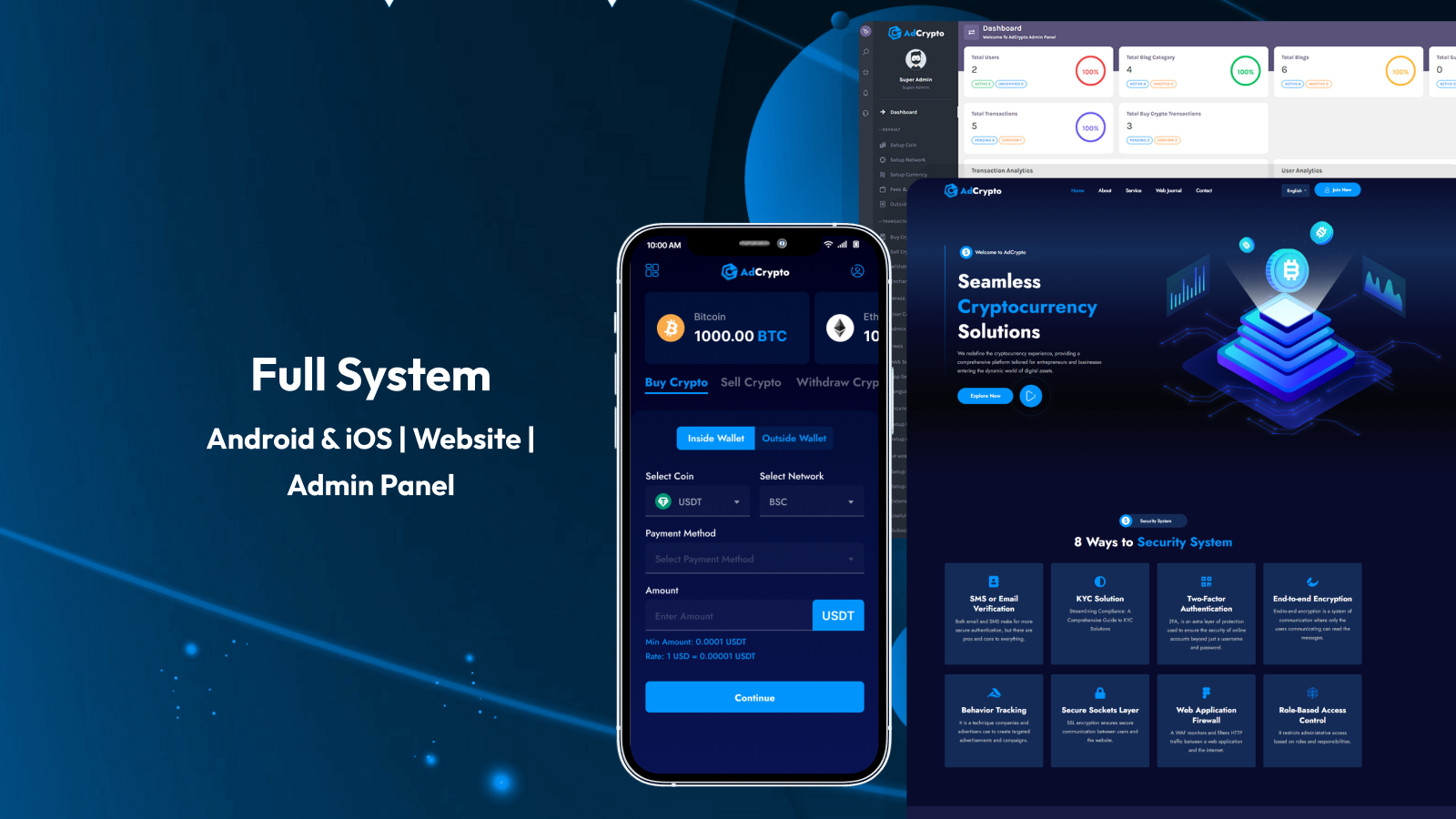 AdCrypto v2.1.0 – Cryptocurrency Exchanger, Buy Sell Full Solution. Ad Crypto is a Comprehensive Solution tailored for Entrepreneurs looking to embark on their Crypto journey. Compatible with both Android and iOS platforms, AdCrypto Offers a seamless Experience complemented by an Intuitive Website and Efficient Admin Panels. Packed with essential features including a Cryptocurrency Exchange, Buying and Selling Crypto, and Withdrawals.